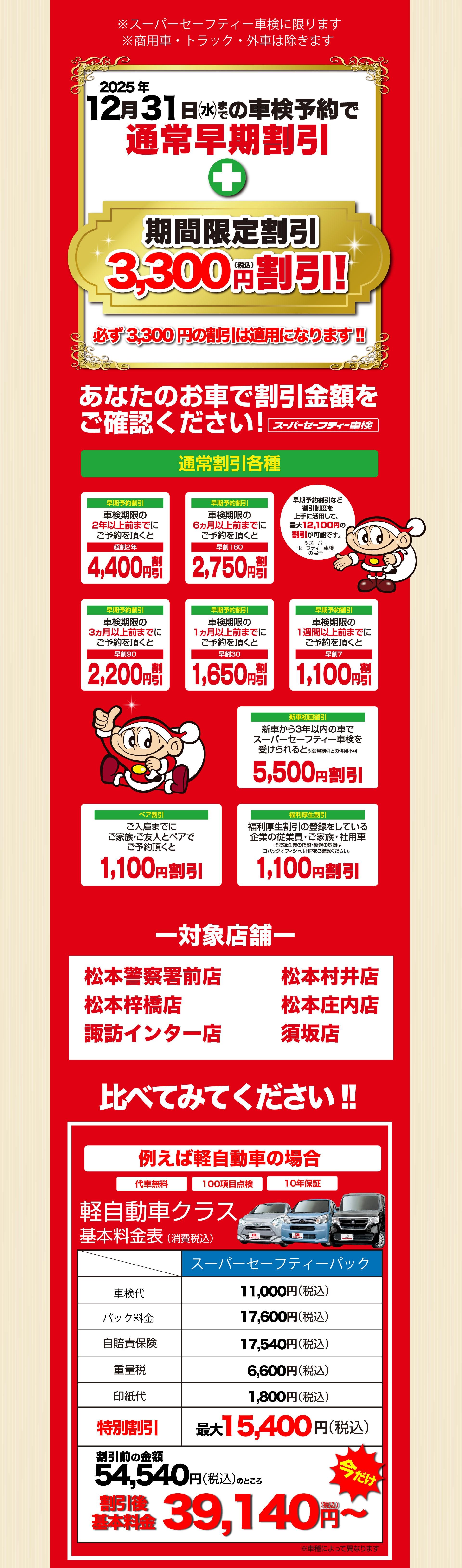 A、スーパーセーフティー車検は代車を無料でご用意させて頂きます。ガソリン代も50kmまで無料です。